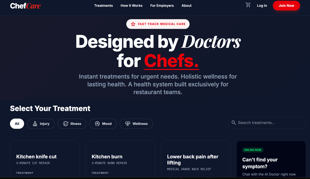 Built for restaurant teams. Choose from 50 curated health conditions or use an AI doctor to help diagnose.